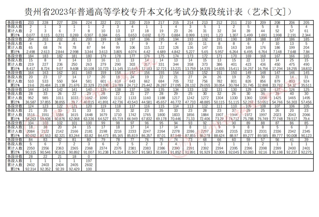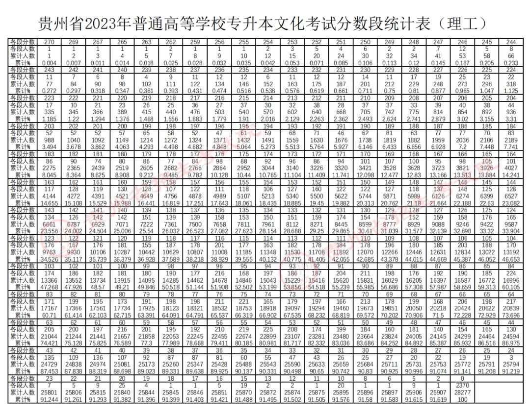 原标题:《贵州2023年专升本文化考试分数线及分数段统计表公布》