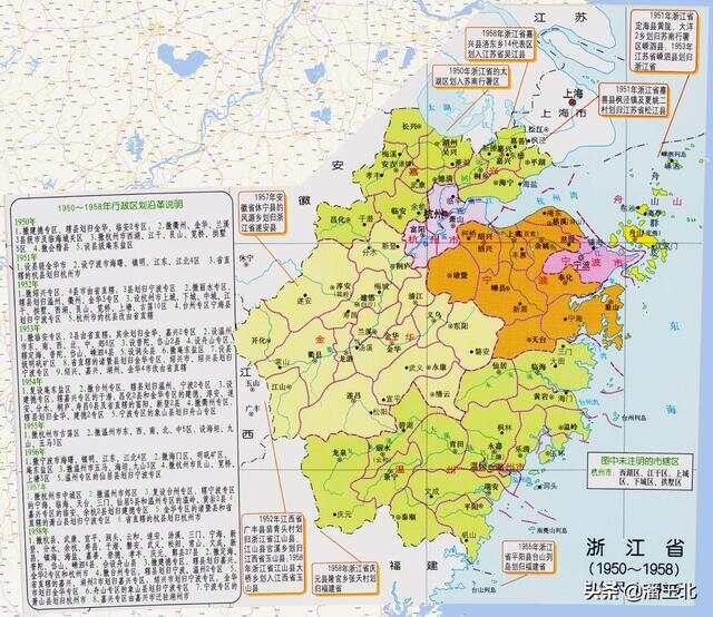 1. 撤临安专区,2县由省直辖,其余划归金华、嘉兴2专区;