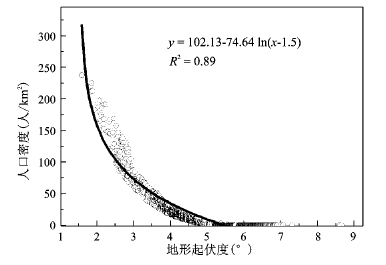 图3 岷江上游人口密度与地形起伏度相关性