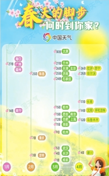 中国天气网特别推出2025全国盼春地图和常年入春时间表,快来看看你家春天何时能“签收”。