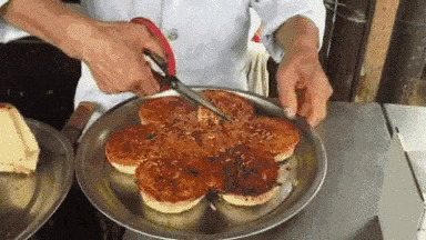 海棠糕因糕形似海棠花而得名,香甜可口。它的制作工艺算是比较复杂的,馅料是赤豆沙、白糖和花生油,糕粉是小麦面粉,以烘烤为主。焦黄的海棠糕趁热的时候吃,豆沙馅流淌在嘴巴里的感觉很棒!