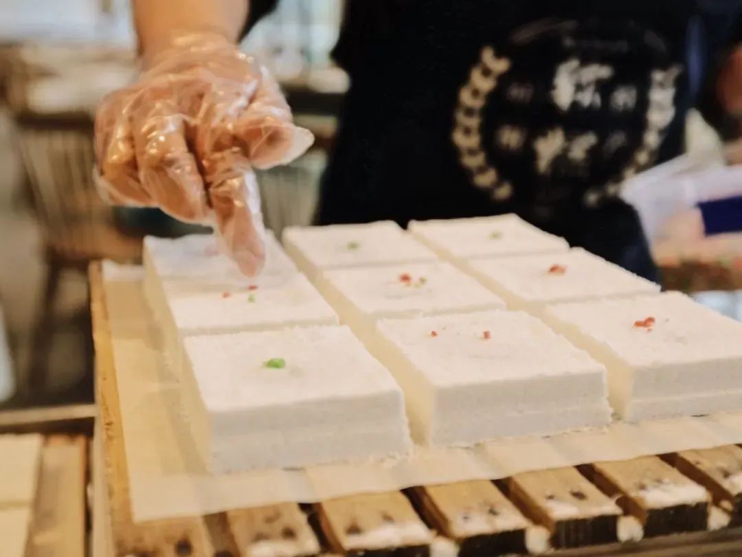 最后切成薄如书页的片,久藏不硬,入口如雪花融化。上海第一食品商店和功德林的云片糕口碑都不错。