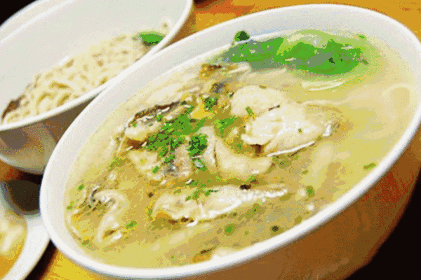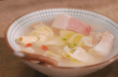 汤里还有咸菜和胡椒粉的映衬鲜味