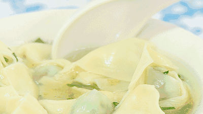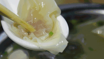 滑滑的馄饨皮,夹上一大筷子菜肉芯