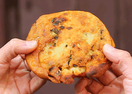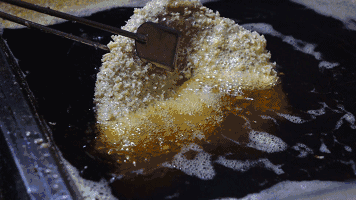 看着肥哒哒的油墩子在锅里浮浮沉沉