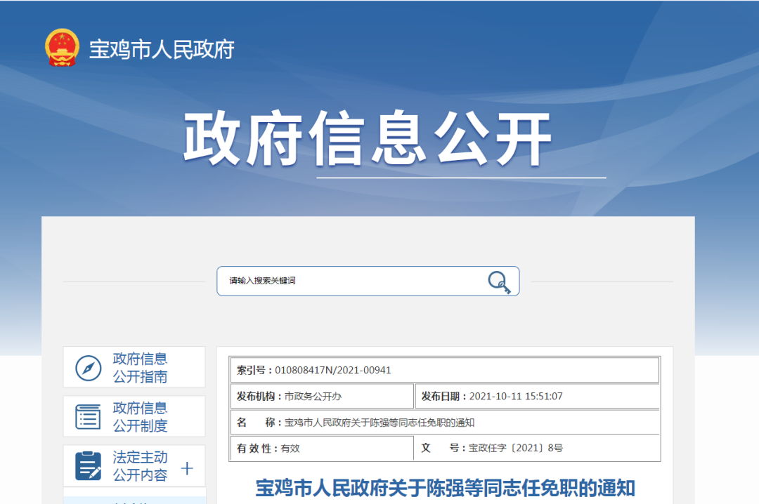 齐晓辉同志宝鸡市人民政府房屋征收中心(宝鸡市旧城改造工作中心)主任职务;
