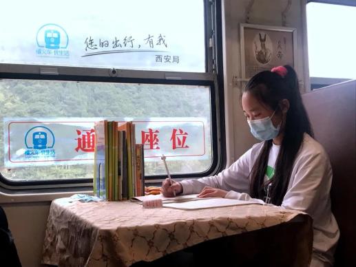 2018年,6063/4次列车率先设立“通学车厢”,开辟学生专座,采配学习工具,选派有书法绘画特长的乘务员担当通学车厢辅导员,并在陕西省委宣传部的指导帮助下,筹集免费借阅书籍3300余册,共同建设起“火车图书馆”,与陕西省全民阅读活动组委会等联合举办 “开学第一课” “慢火车上张金榜” “走读宝成”等主题公益活动。