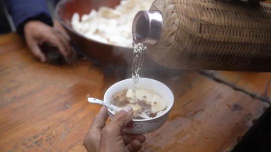 这碗“糖茶”吃了后,主人才会给你泡其它茶。如果说来的是贵客或稀客,主人往往还会在“镬糍汤”中加料,往往加入一个或数个糖氽鸡蛋,称作“镬糍糖氽蛋”,那便是老底子塘栖一带待客的最高待遇了。