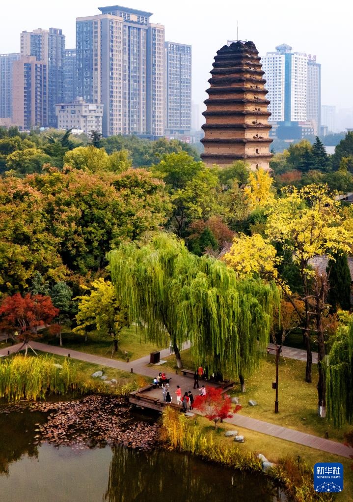 西安小雁塔(无人机照片,2024年11月10日摄)。
