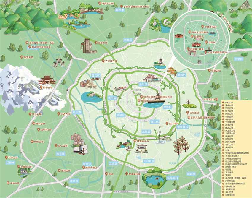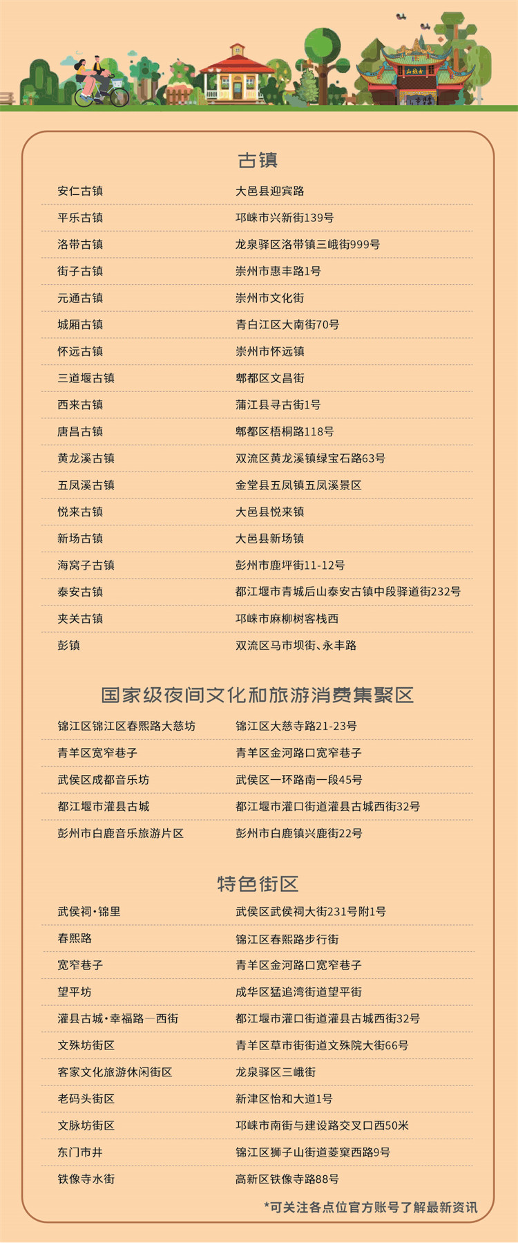 古韵成都古镇街区场景:古韵成都地图涵盖安仁古镇、平乐古镇、洛带古镇等全市34个古镇街区点位。