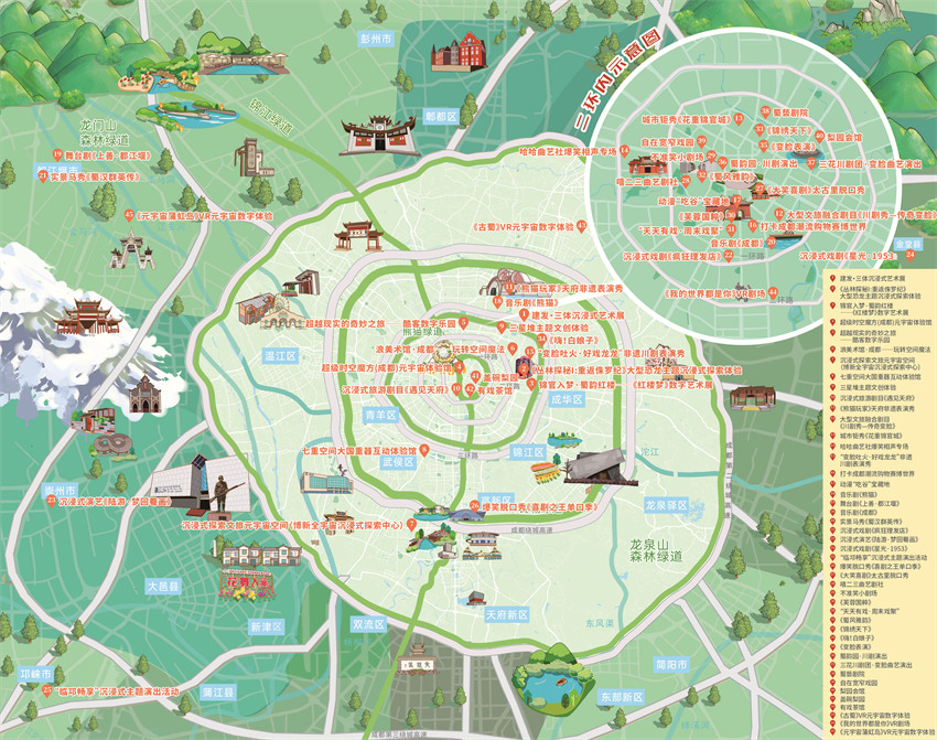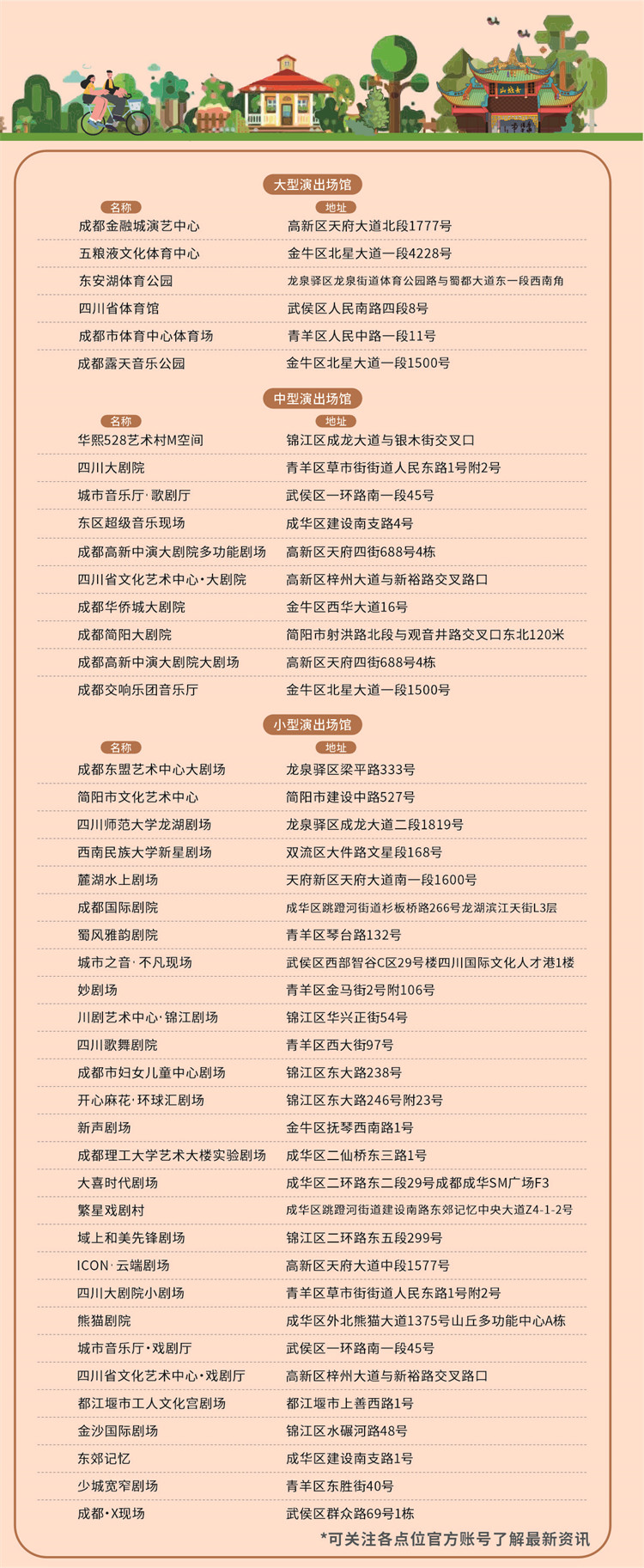 璀璨成都重点演出场馆:璀璨成都地图包含成都金融城演艺中心、五粮液文化体育中心、东安湖体育公园等全市40个演出点位。