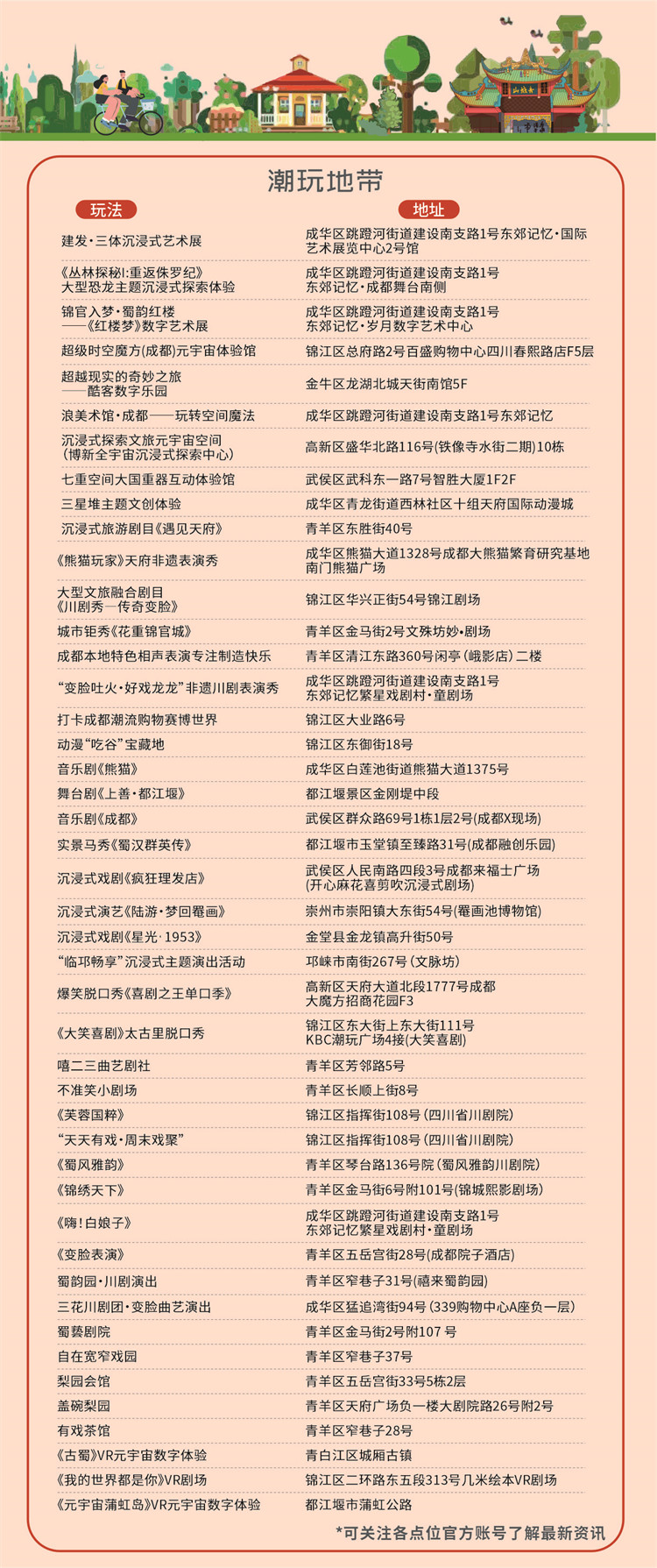炫酷成都重点潮玩场所:炫酷成都地图涵盖博新全宇宙沉浸式探索中心、三星堆主题文创体验馆、浪美术馆·成都等全市45个潮玩点位。(成旅轩)