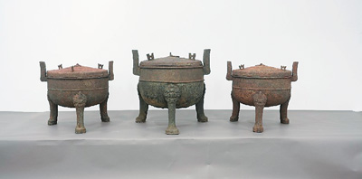武王墩一号墓出土的三件一组的箍口鼎。