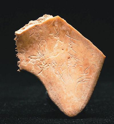 距今5万年至3万年,这里就开始使用黑曜岩原料制作石制品,是目前世界范围内最早开发利用黑曜岩原料的遗址之一。“黑曜岩原料的来源主要是长白山,但也有少量外来原料。”徐廷说,“值得注意的是,这一时期发现了大量哺乳动物化石,保存状况较好,可鉴定种属包括鹿、野牛、野马等。另外在1件长骨碎片表面清晰可见浅线条刻划痕迹,将骨片分为上下两部分,是目前东北亚地区发现年代最早的线雕骨器。”