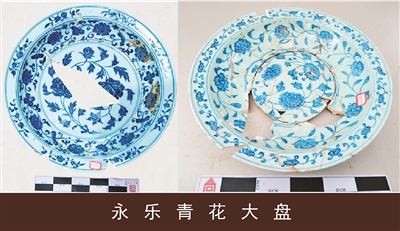 景德镇市元明清制瓷业遗址群出土的永乐青花大盘。