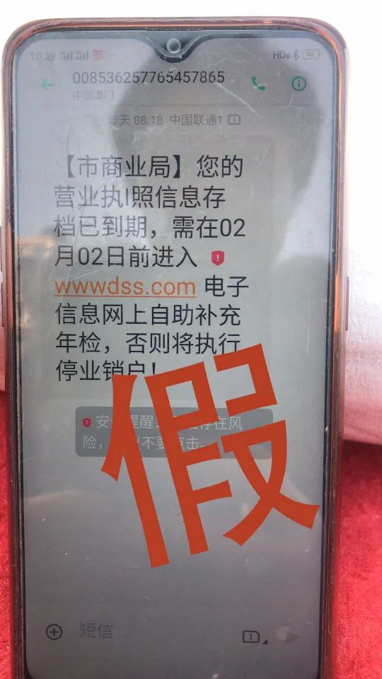 经济开发区中青家具广场一商户收到短信工商营业执照升级的短信,点进链接,填写了信息和银行卡账号之后被扣了38000块钱。