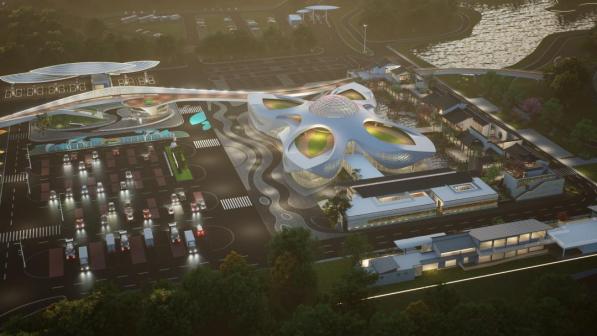 广东省首个主打荔枝文化特色服务区·柏桥服务区的规划设计效果图。