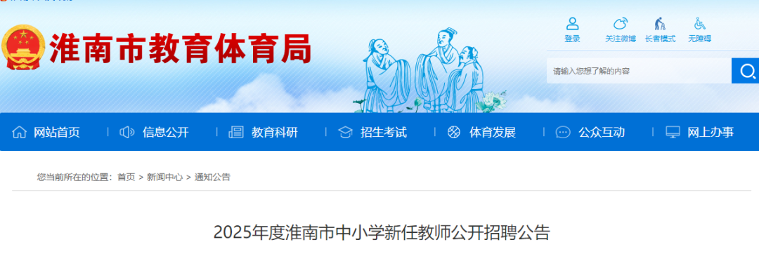 为做好2025年度淮南市中小学新任教师公开招聘工作,根据《安徽省教育厅、安徽省人力资源和社会保障厅、安徽省机构编制委员会办公室、安徽省财政厅关于中小学新任教师公开招聘的实施意见》(皖教师〔2013〕10号)、《安徽省教育厅、安徽省人力资源和社会保障厅、安徽省机构编制委员会办公室、安徽省财政厅关于进一步改进和完善中小学新任教师公开招聘工作的通知》(皖教〔2019〕29号)、《安徽省教育厅、安徽省人力资源和社会保障厅、安徽省机构编制委员会办公室、安徽省财政厅关于进一步完善中小学教师招聘主体责任的通知》(皖教秘师〔2020〕90号)等文件精神,现就2025年度淮南市中小学新任教师招聘工作的有关事项公告如下: