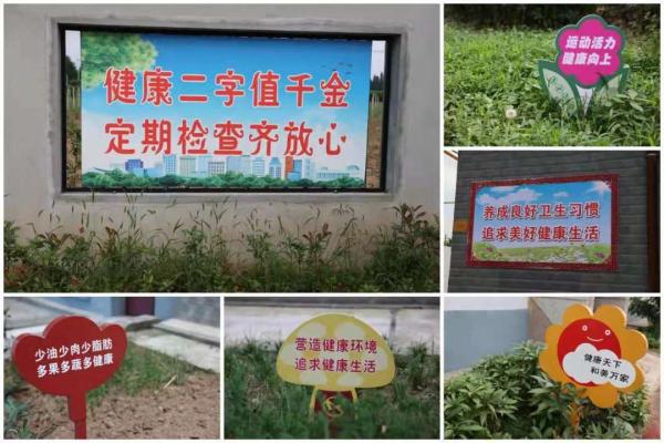走在环绕村里长1900米的健康步道上,只见每家门口步道两旁都插着红红绿绿形状各异的小牌子,让人忍不住会驻足观看。