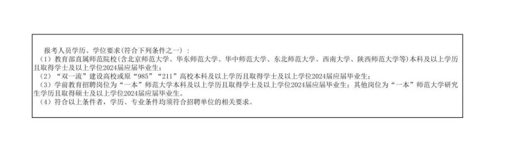 3.具有招聘专业对应的普通高中或幼儿园教师资格证;或已经参加全国中小学教师资格考试(笔试)且成绩合格,或已取得师范生教师职业能力证书,并在2024年8月31日前取得招聘岗位对应的教师资格证书,否则取消聘用资格;