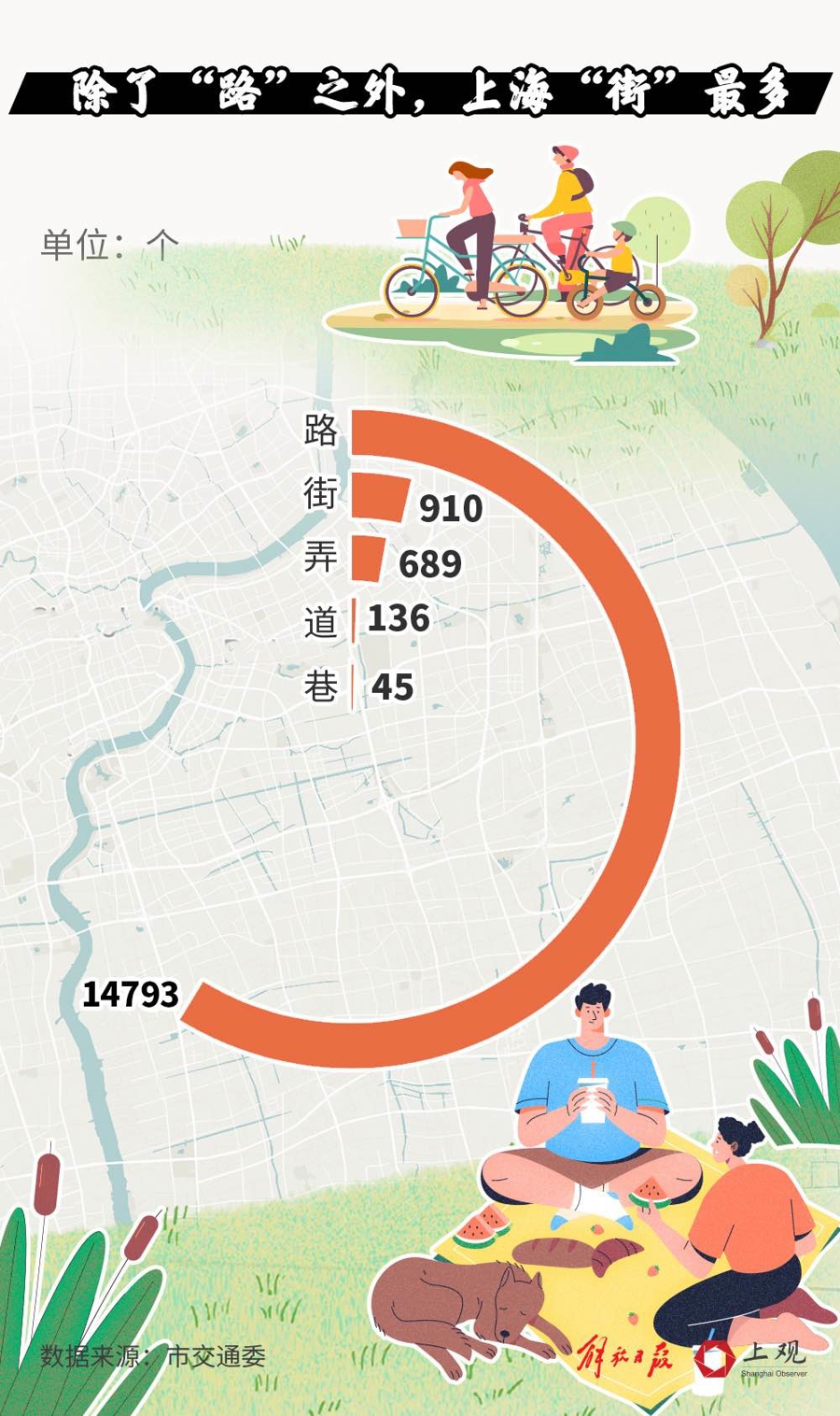 除了“路”,上海还有“街”和“弄”,“道”有136条,“巷”则只有45条。