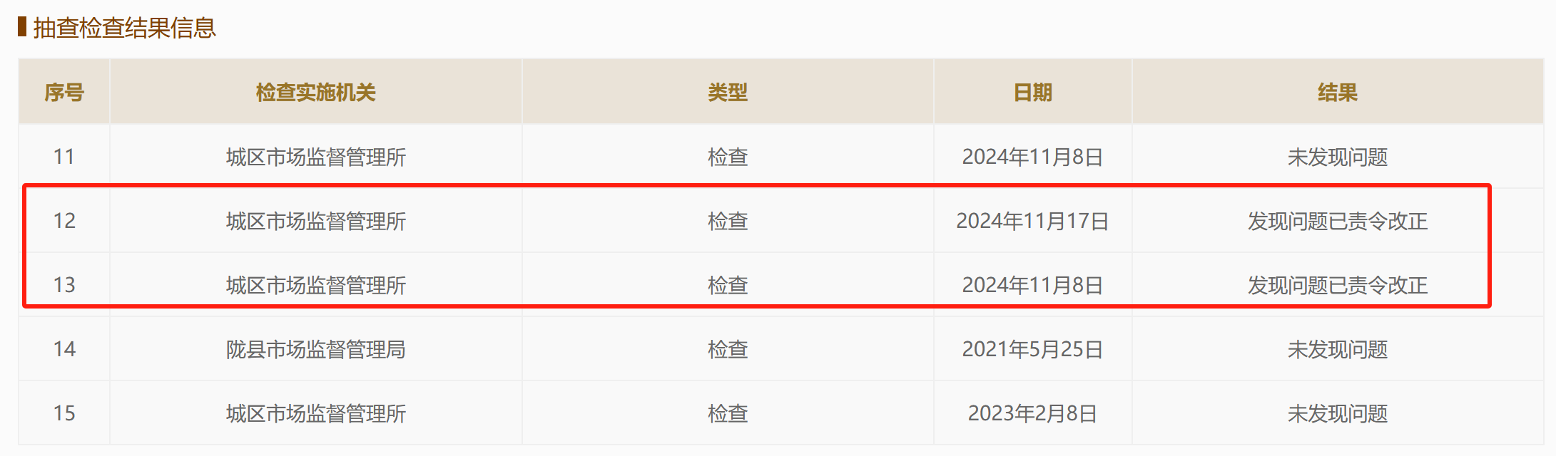 国家企业信用信息公示系统披露信息显示,飞鹤(陕西)乳品有限公司(下称“飞鹤陕西”)在今年11月8日、17日出现被城区市场监管管理所在抽查检查中发现问题并责令整改的情况。