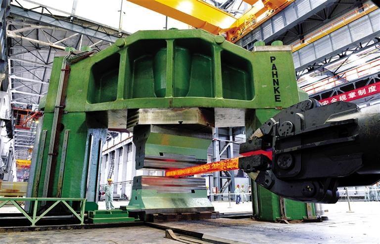 宝钛集团全自动程序化热加工设备——万吨自由锻压机。