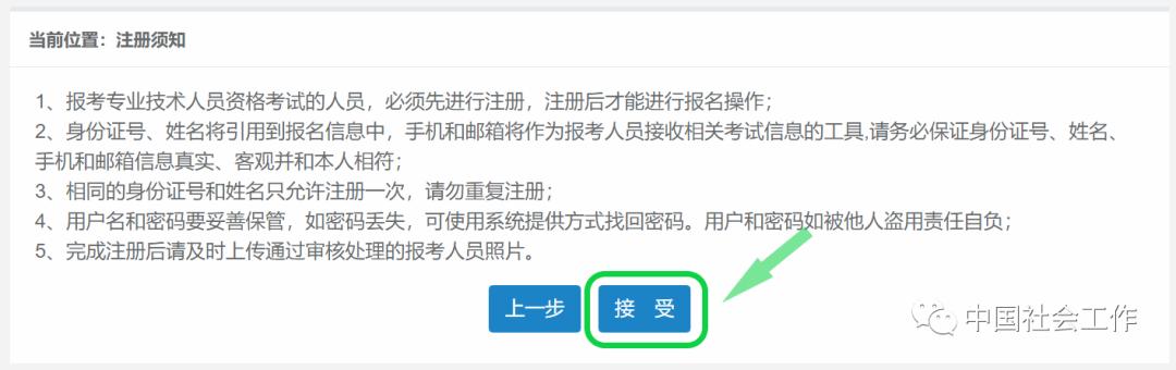 阅读“注册须知”,点击“接受”。