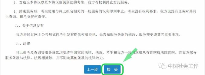 阅读“专业技术人员资格考试网上报名协议”,拉到最后点击“接受”。