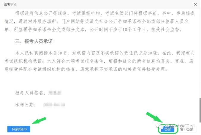 点击“签署”,学历核查系统没有通过的,可以点击“下载承诺书”打印,和其他资料一起带到现场验证。