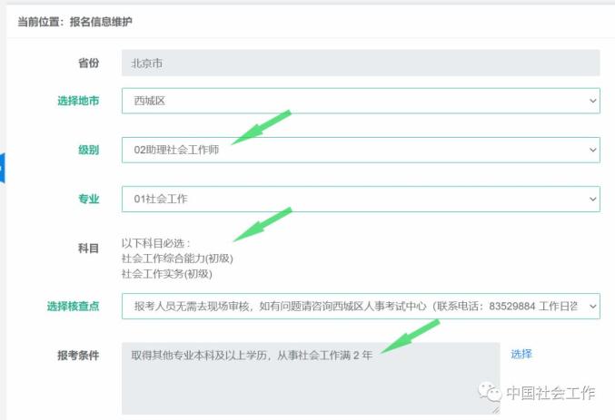 (9)允许报名专业。社会工作专业毕业的选“社会工作”,其他专业毕业的选“其他”。