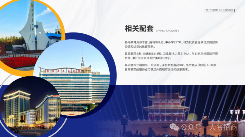 大名县内教育、医疗、商贸资源丰富,可为落地的各位企业家及随行家属提供多样化的配套服务。