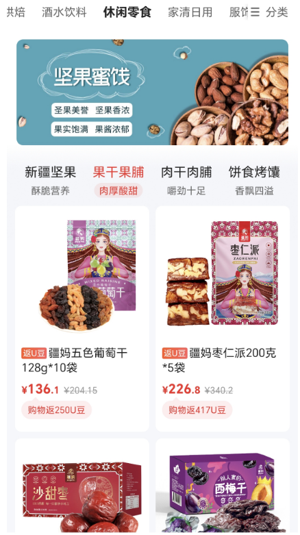 优联云购新疆休闲零食热销!坚果礼盒、风干牛肉、五色葡萄干成爆款