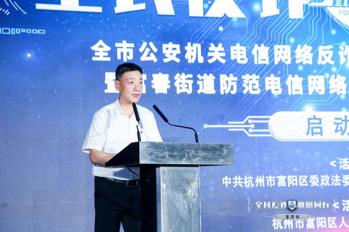 杭州市公安局富阳区分局刑侦大队副大队长何杭法重点介绍富阳公安反诈咨询专线“富春智呼”96110
