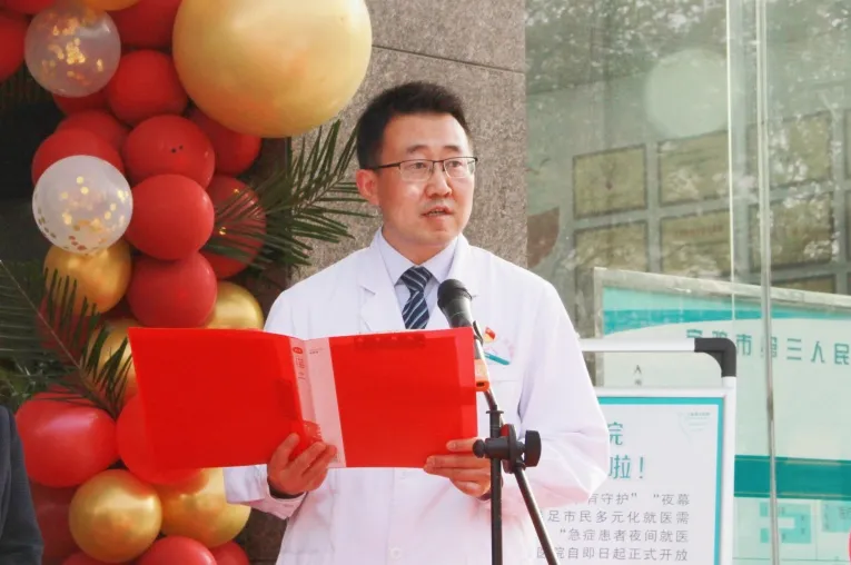 夜间门诊医生代表、神经内科六病区主任秋军峰,医技科室代表、医学检验科主任李志恒,窗口科室代表、药剂科药师何秋萍进行发言,表示将始终坚持“以患者为中心”的服务理念,以精湛的技术和暖心的服务,打造值得信赖的夜间医疗品牌。