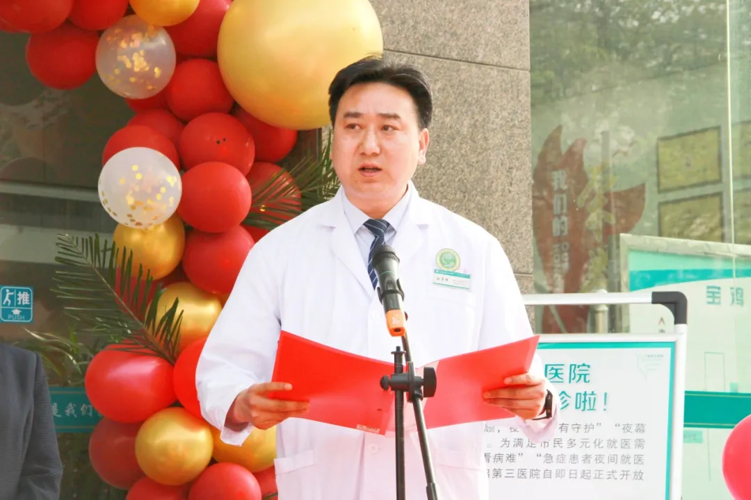 宝鸡市卫健委医政医管科科长宋宏运,医院班子成员、医护代表、患者及群众代表共计200余人参加开诊仪式。仪式由党委专职副书记赵婷主持。