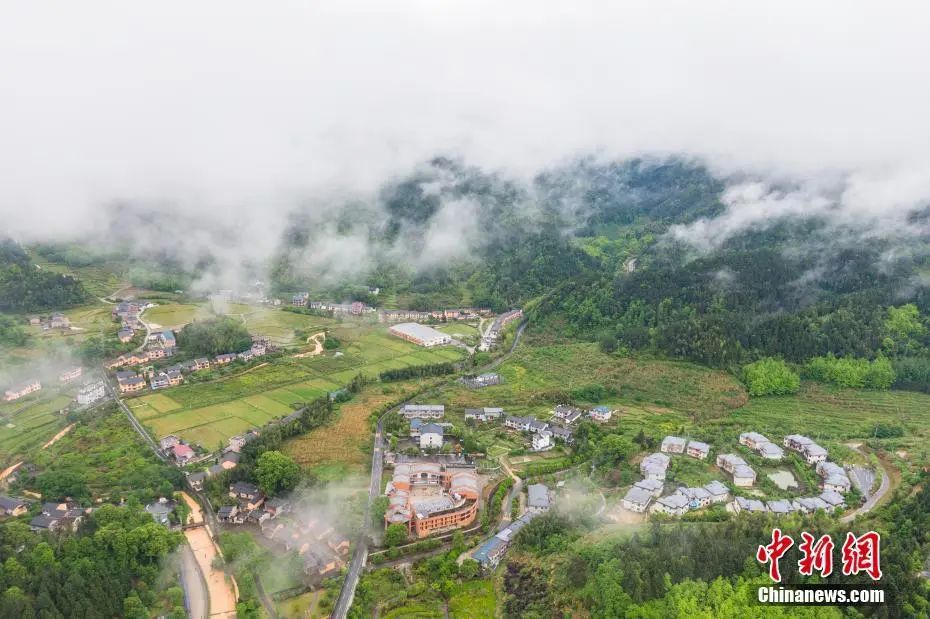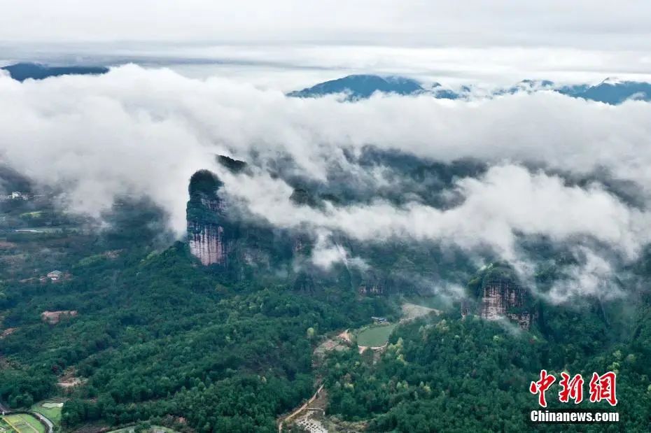 航拍江西明月山雨后云雾缭绕,风光旖旎如水墨画。刘占昆 摄