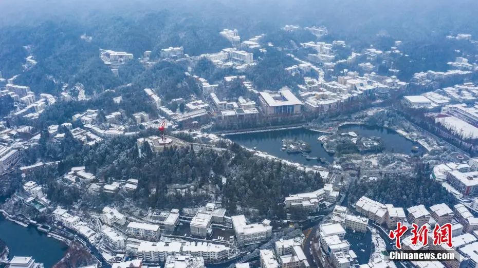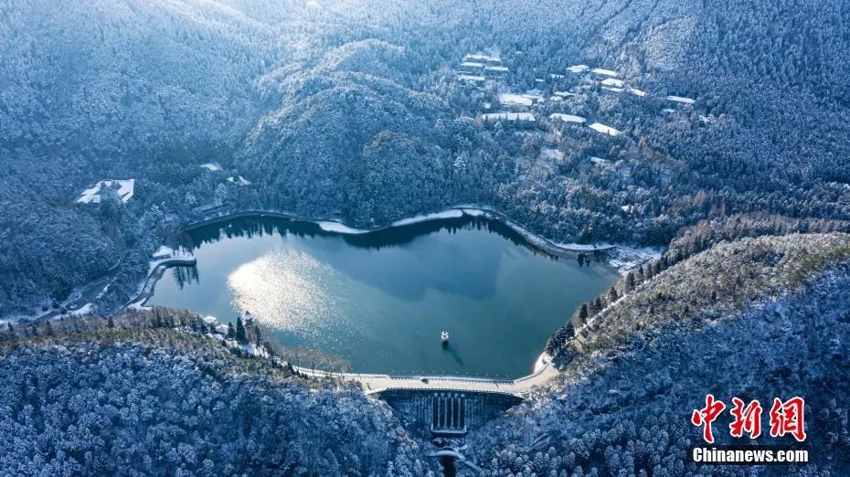 航拍井冈山茨坪镇银装素裹,宛若一幅美丽水墨画。李小明 摄