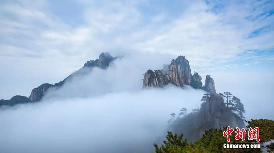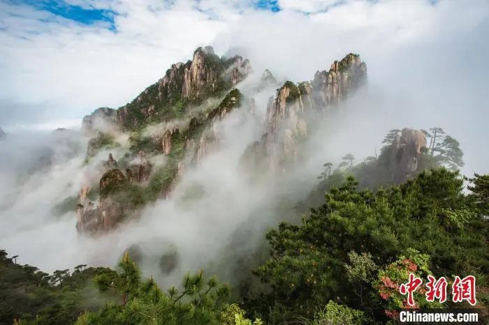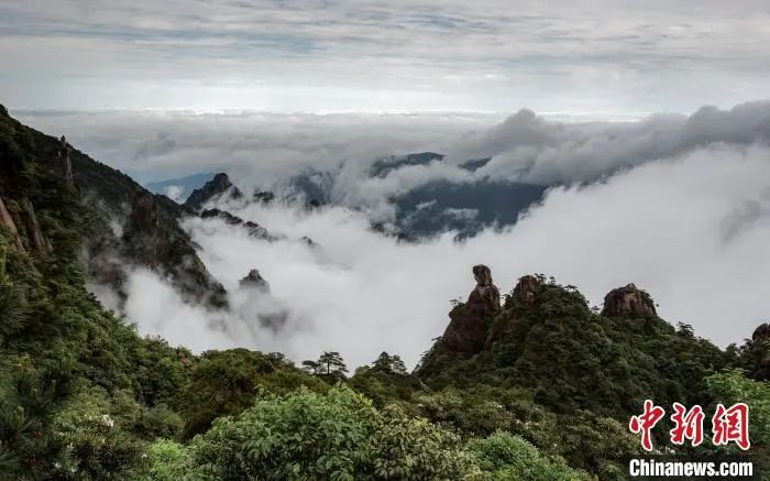 久雨初歇,世界自然遗产地江西三清山出现壮美云海景观。廖国平 摄