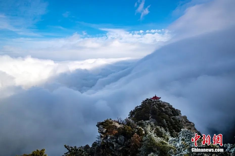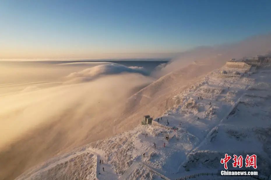 江西庐山出现磅礴壮观的瀑布云和雾凇景观。司步群 摄