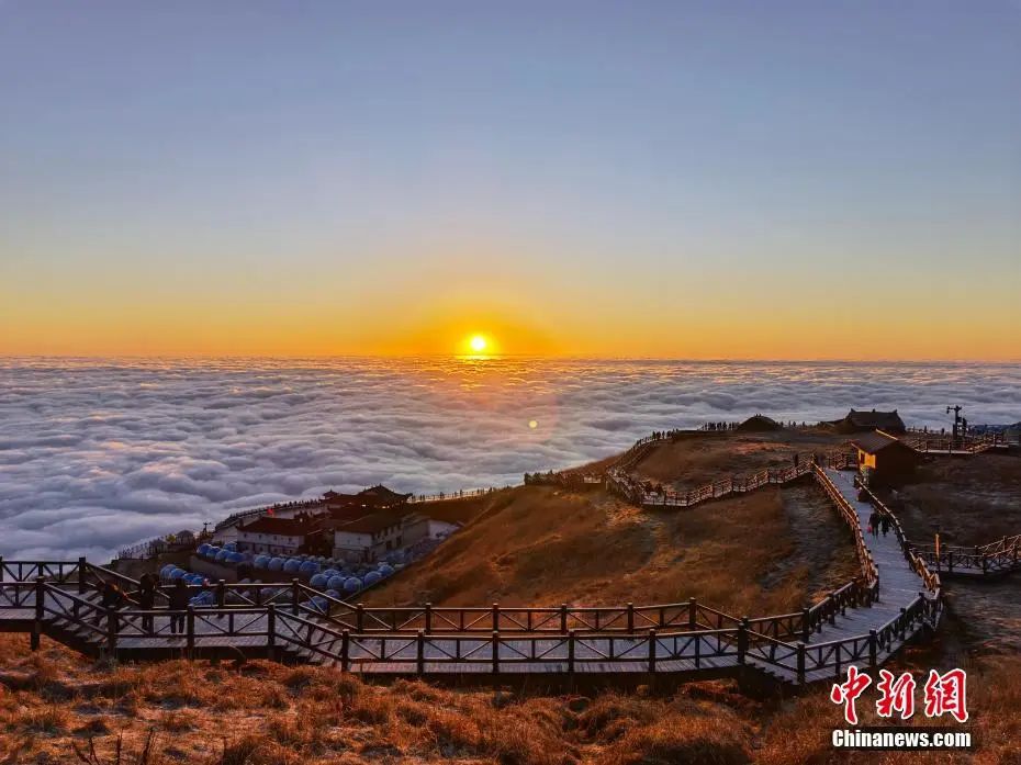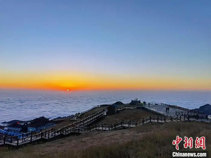 武功山最高峰金顶观一轮红日从云海中缓缓升起。刘芸池 摄