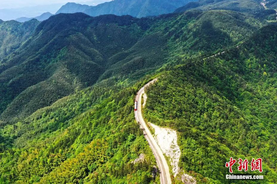 航拍位于明月山景区的高山观光小火车。刘占昆 摄