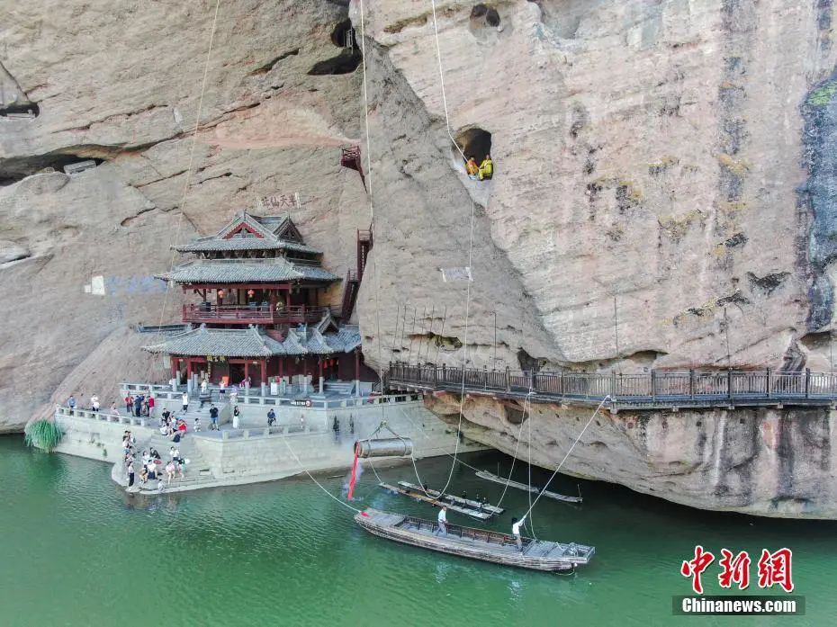 根据科学研究成果对悬棺安放进行的情景模拟重现
