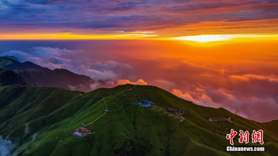 图为航拍江西武功山绝美晚霞。李小明 摄