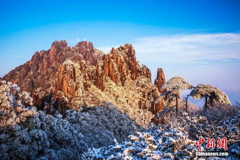 雪堆积在群峰和树梢上,将三清山妆点成洁白世界。胡棉旺 摄