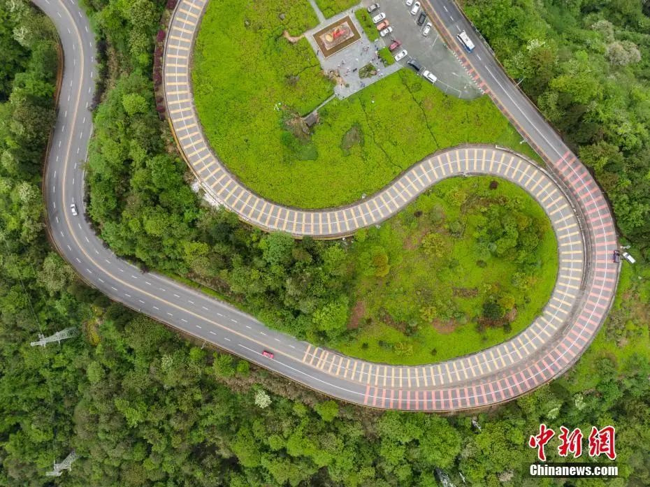 江西井冈山林海中如长龙般蜿蜒曲折的盘山公路。刘力鑫 摄