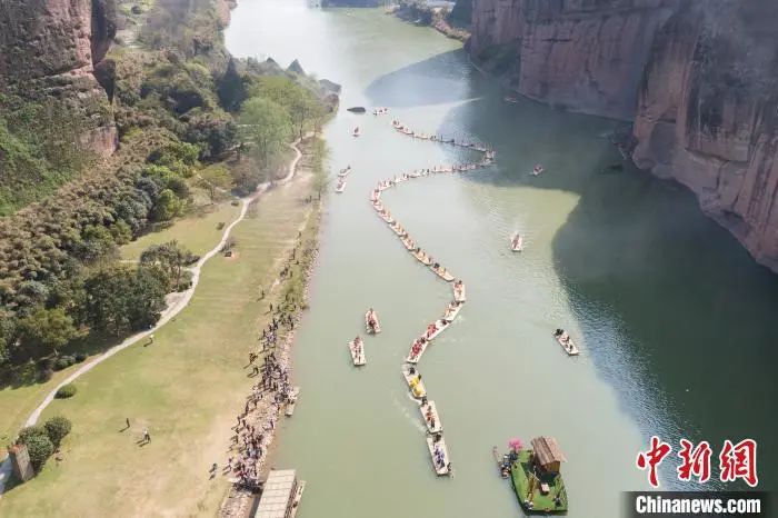 江西龙虎山景区泸溪河上,竹筏上一字排开。刘力鑫 摄
