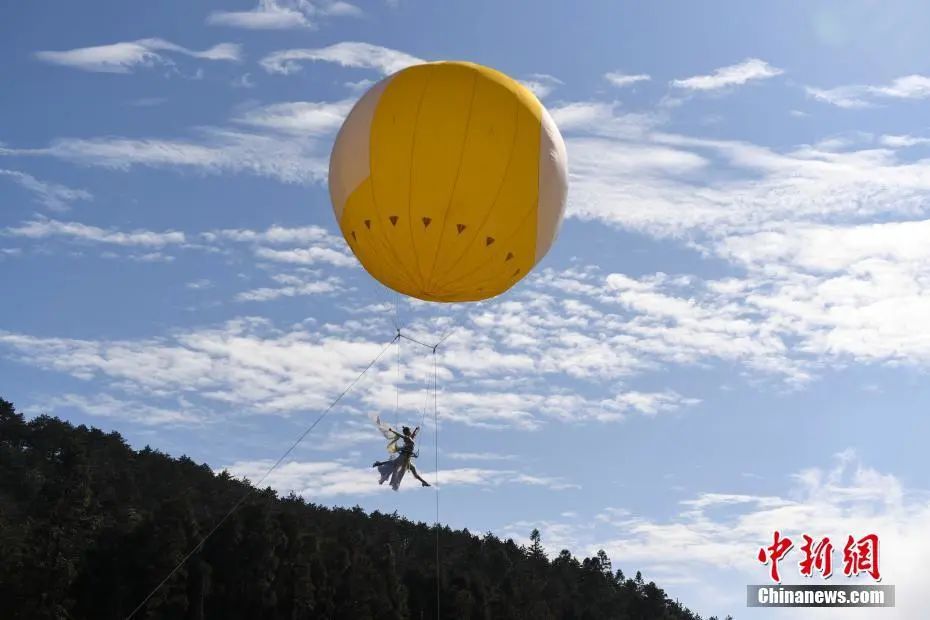 宜春明月山海拔1530米的月亮湖上,杂技演员表演“嫦娥奔月”。陈飞 摄