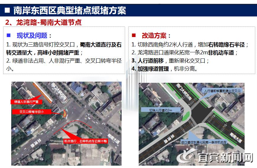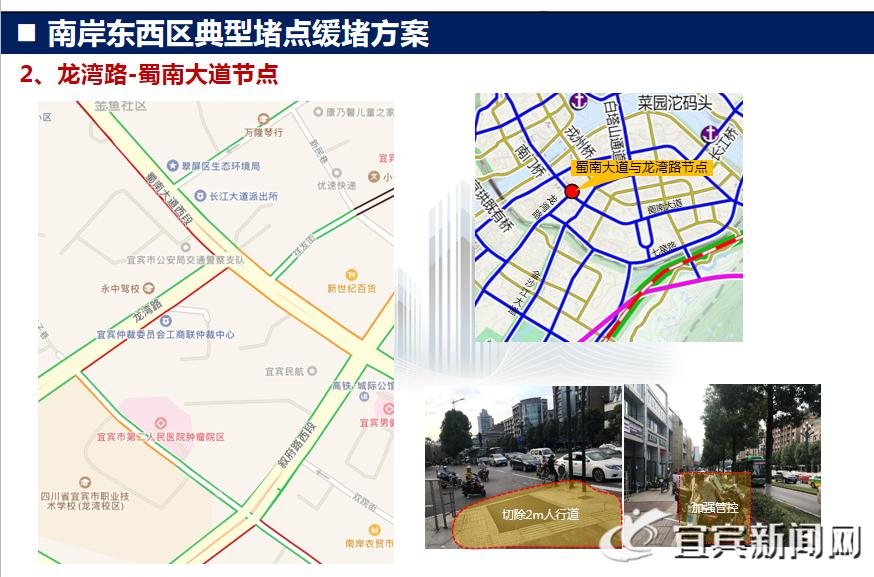 缓堵保畅微研究工作将继续,改造也将陆续开展,预计在春节后还将逐步启动长江南路西段南门桥至金沙江铁路桥段、外江路和七星路交叉口、蜀南大道和商贸路等节点的改造。