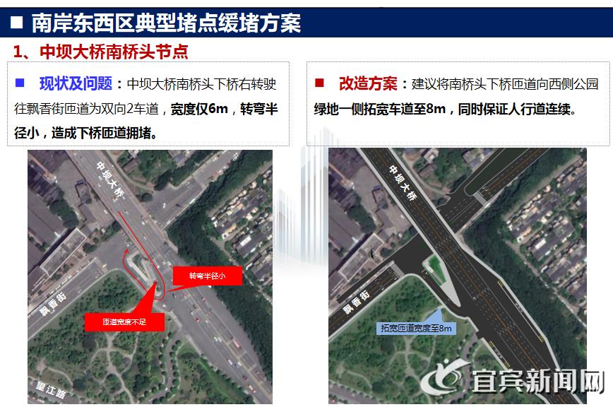 目前,中坝大桥南桥头下桥匝道,蜀南大道-龙湾路交叉口,南丝绸路-七星路交叉口的改造已完成,部分路段预计最快可提前25分钟结束早晚高峰。